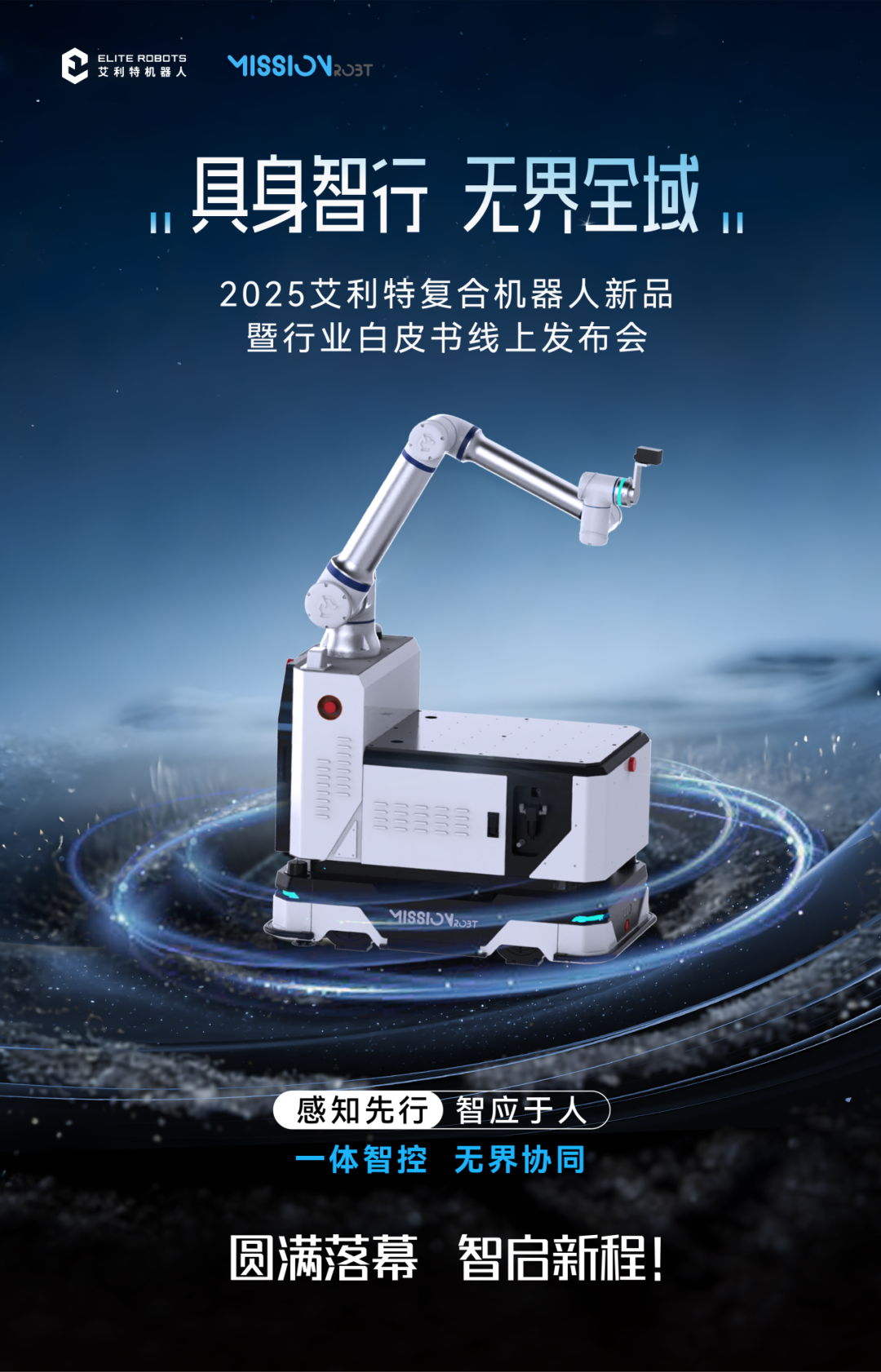 作為智能操作機器人領先者,艾利特機器人始終致力于將具身智能與工業場景深度融合,構建以“手、眼、腳、腦”協同為核心的機器人智能體。我們認為,真正的工業智能化不僅是單一任務的自動化,更在于機器人具備自適應、可協同、可推理的智能操作能力。為此,艾利特舉辦了2025年度重磅戰略發布會——「具身智行·無界全域」復合機器人新品暨行業白皮書線上發布會,并圓滿落幕。