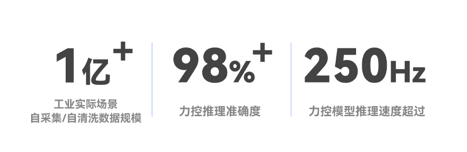 依托超1億級實際場景數據的訓練,力控推理精度>98%、推理速度可達250Hz,不僅能滿足具身機器人實時應用需求,更大幅降低數據采集成本。